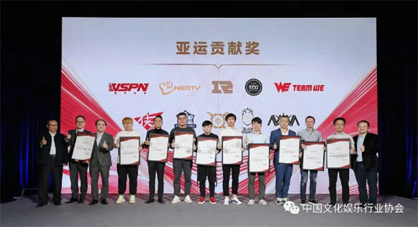 晚宴活动期间,中国文化娱乐行业协会会长刘金华、秘书长孔明、中国文化娱乐行业协会电子竞技分会常务副会长侯淼为选手及行业代表颁发了亚运荣誉证书。