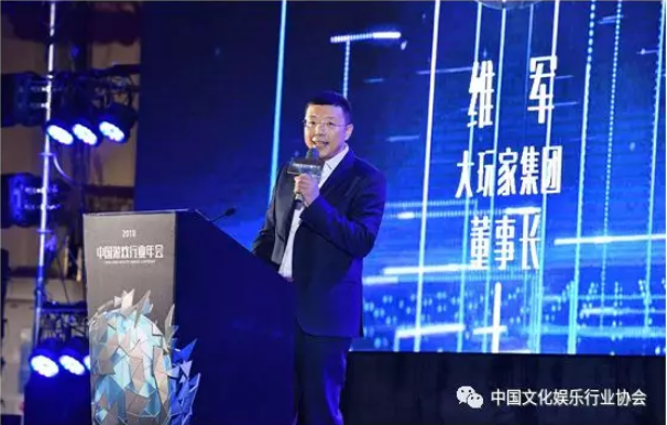 11月23日,为推动我国文化娱乐行业转型升级、健康发展,由中国文化娱乐行业协会主办的2018中国游戏行业年会在湖北省武汉市举办。文化和旅游部有关负责人出席会议,中央美术学院城市设计学院院长王中、腾讯集团副总裁程武、大玩家集团董事长维军、温莎集团总经理魏崴,完美世界高级副总裁顾黎明、网易企业发展部副总裁庞大智、中国青少年研究中心少年儿童研究所所长孙宏艳、腾讯电竞业务负责人侯淼进行了主题演讲。中国文化娱乐行业协会会长刘金华、秘书长孔明以及索尼、畅游、巨人、金山、风云投资、反斗乐园、华立、希力、斗鱼、曼恒、K米、多益、三七互娱、汤姆熊等国内文化娱乐领域代表性企业300多人参加会议,人民网、新华网、中国文化报、中青网、腾讯、网易、新浪等权威媒体对大会进行了报道。